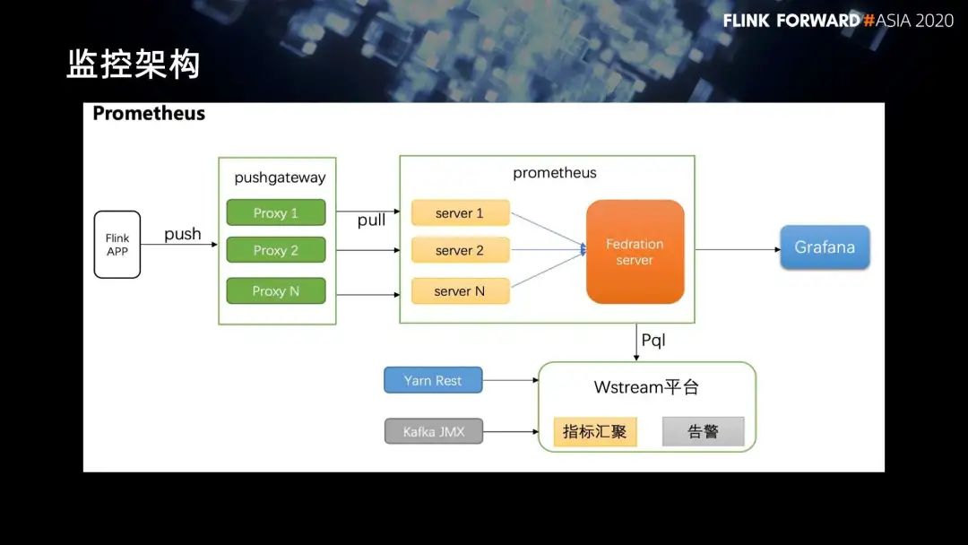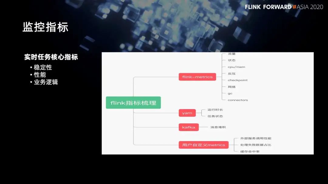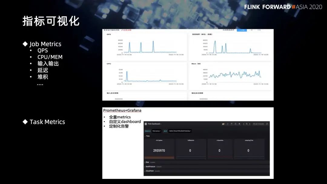 第一个是 Flink 自带的 Flink-metrics,提供大量的信息,比如流量信息、状态信息、反压、检查点、CPU、网络等等;