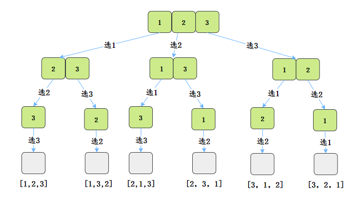 我们把这个选择抽象成一棵树,初步有个印象,这是全排列的问题,后面会刷到。