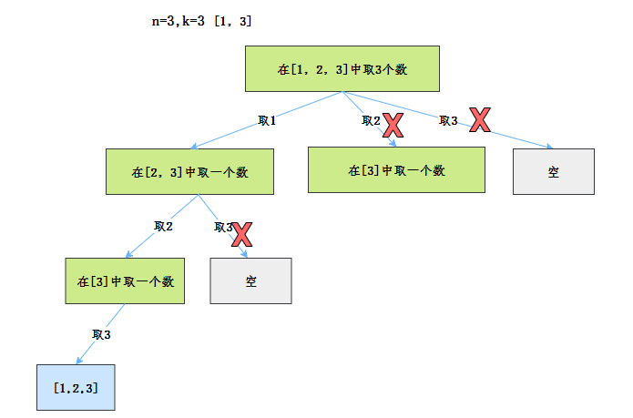 我们的办法就是把所有结果都穷举出来,那怎么穷举呢?可以第一位选1,第二位从[2,3]里选2,第三位从[3]里选3;第二个组合可以第一位选2……