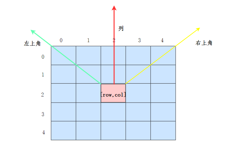 for (int i = row - 1, j = col - 1; i >= 0 && j >= 0; i--, j--) {
