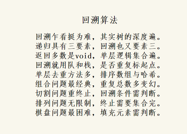 递归有三要素,类似的,回溯同样需要关注三要素: