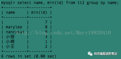 该例查询了name相同的的人中最小的id。如果我们要查询name相同的人的所有的id呢?