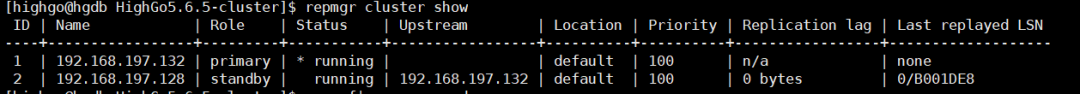 HG_Repmgr多是通过repmgrd守护进程对集群状态进行监控来自动完成相应的管理,如果集群有人工干预或人工误操作等行为,此时Repmgr集群管理系统可能就不能进行自动的管理工作,可能会出现集群状态异常的情况,这时如需使集群恢复正常,则可重做备库。