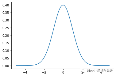 from scipy import statsimport numpy as npimport matplotlib.pyplot as pltmu=0sigma=1x=np.arange(-5,5,0.1)y=stats.norm.pdf(x,mu,sigma)plt.plot(x,y)