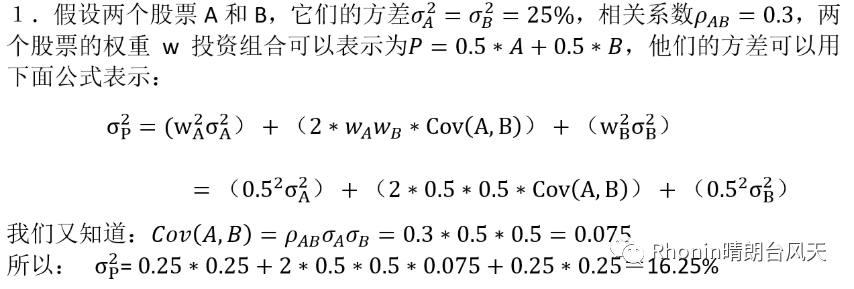 相关系数的选用是有条件的,最常用的是皮尔逊积差相关,xy协方差/x、y标准差。关于协方差值得大家留心一下,因为奠定金融学基础就是马柯维茨投资组合理论,如下。cov就是协方差。