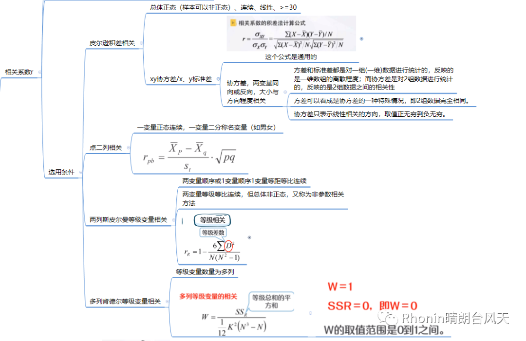 除了积差相关,还有点二列相关,两列斯皮尔曼等级变量相关,多列肯德尔等级变量相关,这些公式都有对应的选用条件。