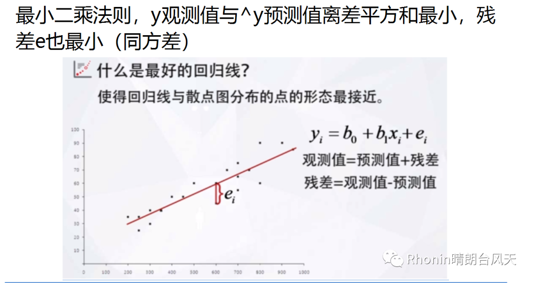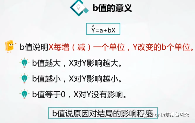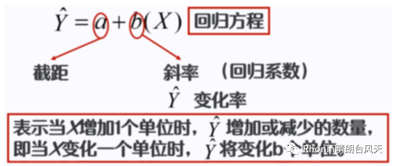 有几个定义要提前理解:x自变量,y应变量,^y预测值,a截距,b回归系数/斜率。特别是标黄的部分,在讲到验证的时候再着重解释。