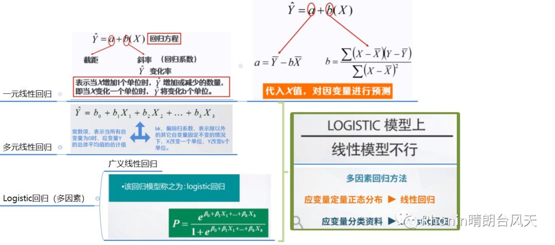 来看看线性回归方程分为三种,要理解多元线性回归和Logistic回归(多因素)的区别: