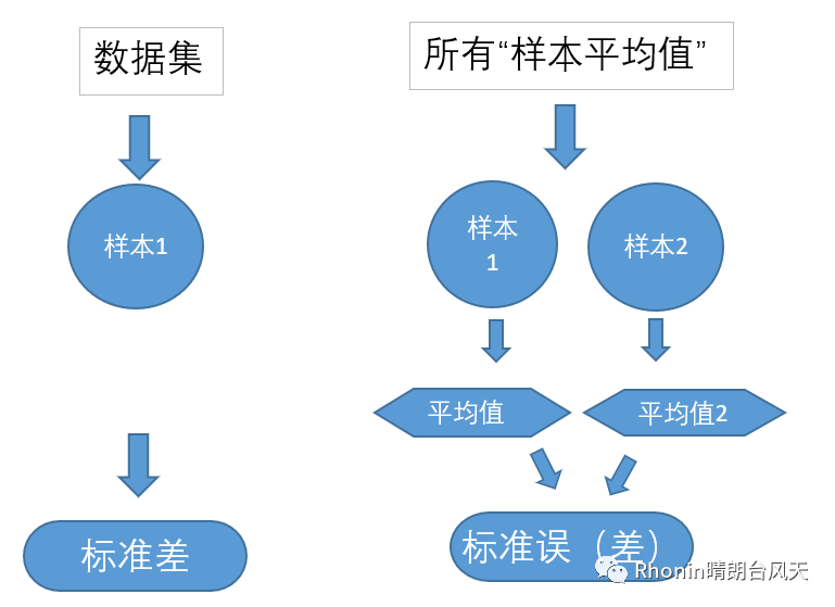 好,我们再回去看看标准差和标准误差(样本>=30)的区别:统计-4 统计描述:高风险高收益