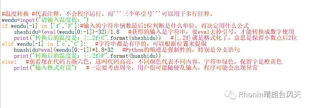 huashidu=eval(wendu[0:-1])*1.8+32 #Python的缩进是强制性的,特别是分支语句