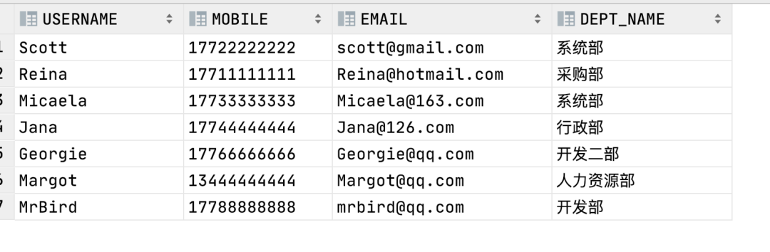 也就是部门id在用户表,和部门表都存在行符合条件数据才展示