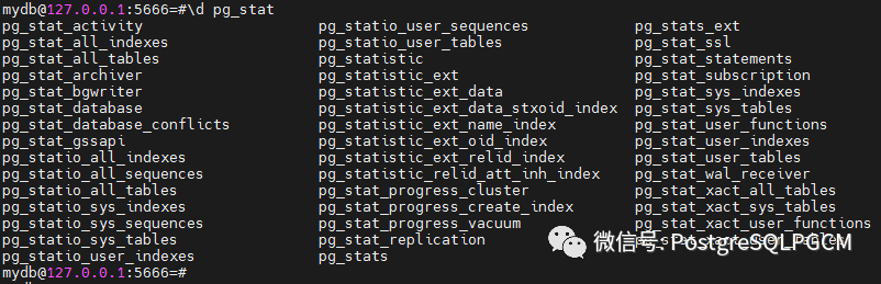 视图以 pg_stat 开头。