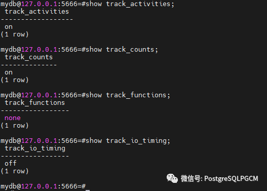 track_activities:此参数可以监控任何服务器进程正在执行的当前命令。
