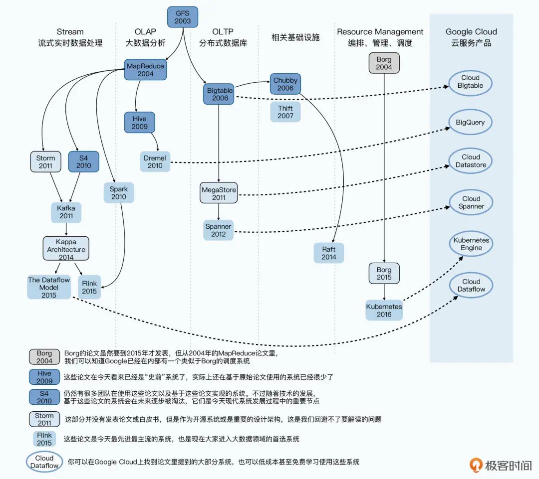 就拿过去 20 年计算机工程界,发展最迅速、产生影响最大的“大数据领域”来说。首先,大数据领域的开源框架层出不穷,一开始这些开源框架也并不完善,有这样那样的不足,所以就需要我们去研究框架的源码和它的路线图,不断地去打 patch 和做优化。而要追根溯源,还是得看启发了这些开源框架的原始论文。