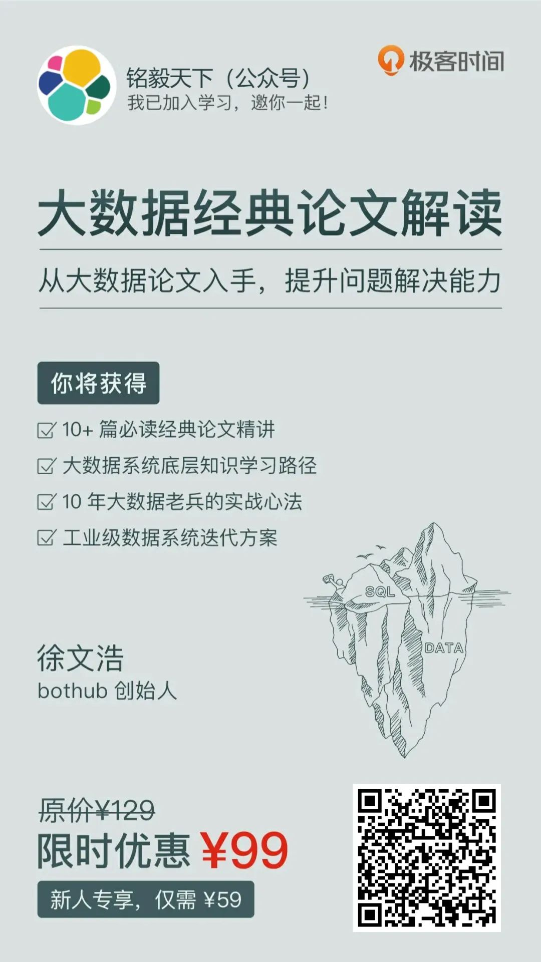 一是原版论文都是英文,理解起来费劲;第二,大数据相关的学习资料良莠不齐,很难靠自己梳理出一条清晰的学习路径,去深入了解并建立大数据系统的底层知识体系。