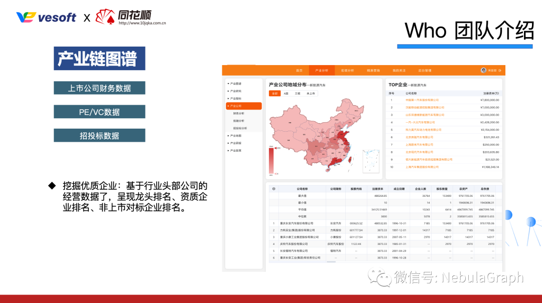 当前我们维护了这么几个图谱,一个是产业链的图谱,就是数据来源于一些公开的数据。通过语义抽取,构建出来的产业链图谱;