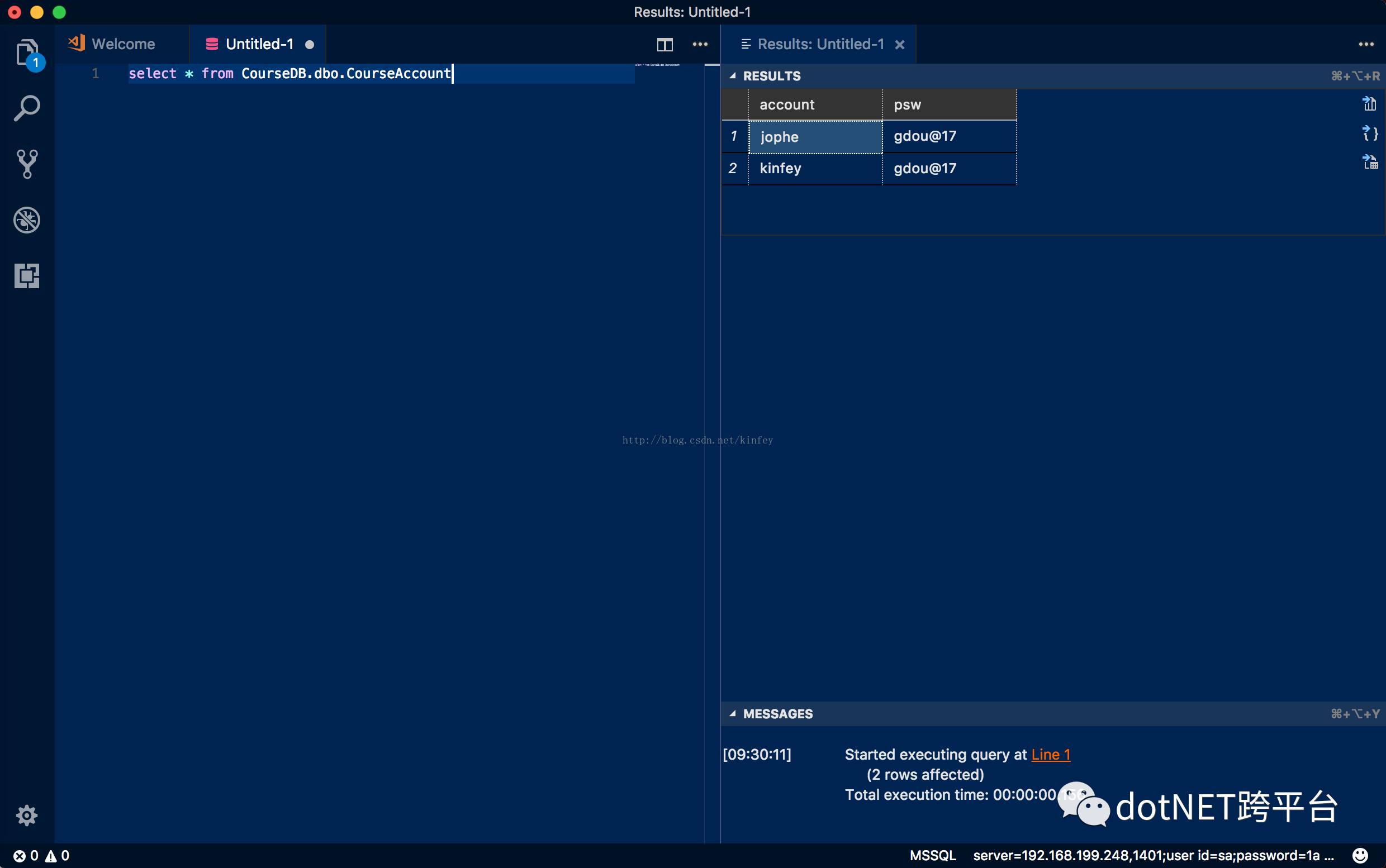 a.Visual Studio Code 如何操作SQL Server 可以参考我之前的文章(http://blog.csdn.net/kinfey/article/details/53246754)