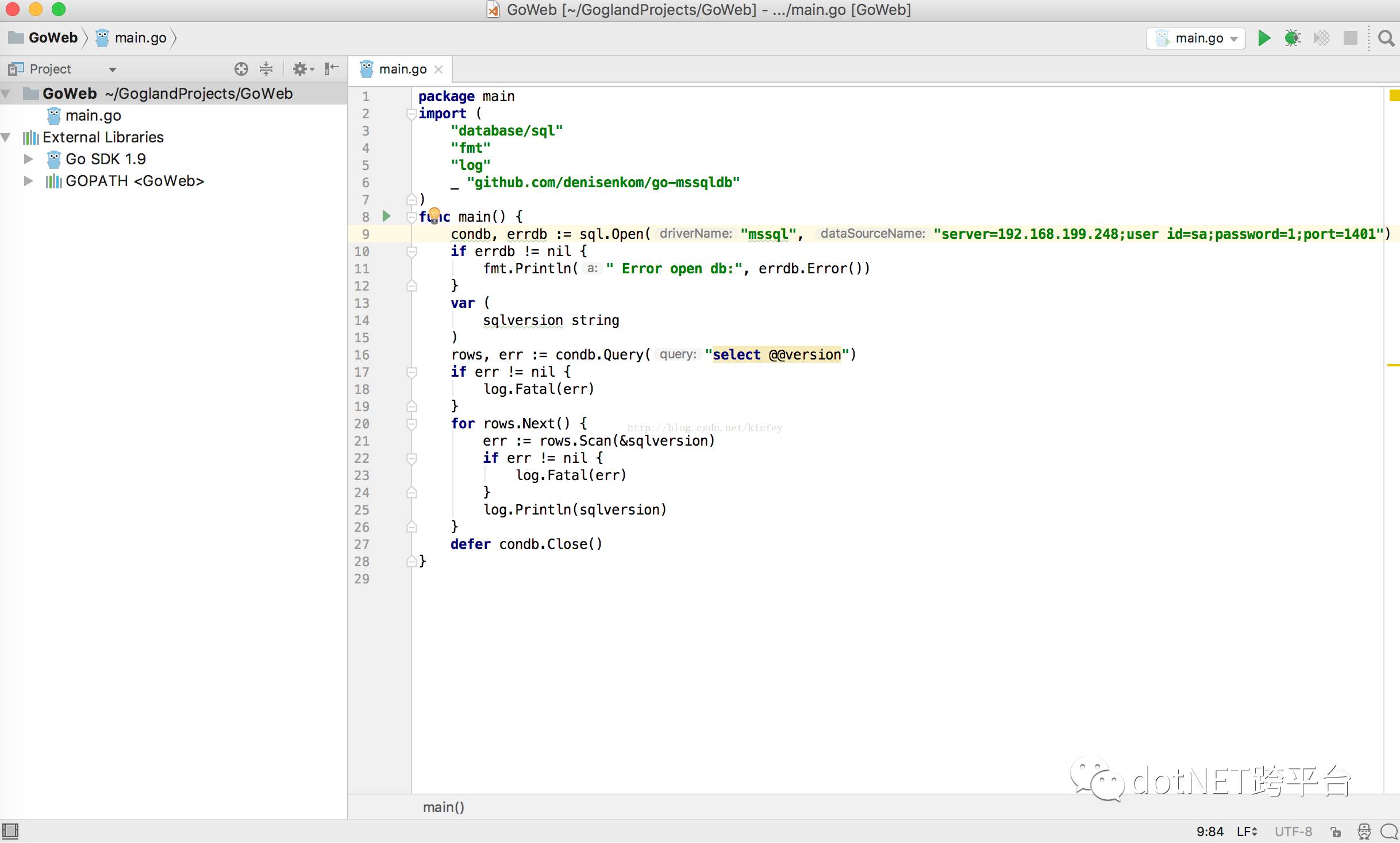 到这里就把SQL Server on Docker的基本安装和管理环境说完了,但不少人会担心是否能投入到一些开发和生产力上,特别对现有的一些技术兼容性如何。我这里用Go做了一段简单的数据库连接,兼容性还是不错的。