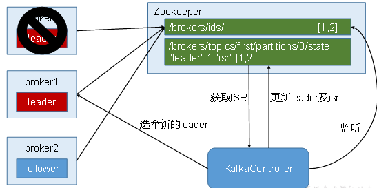 因此这个集合中的任何一个节点随时都可以被选为leader。ISR在ZooKeeper中维护。ISR中有f+1个节点(follow+leader),就可以允许在f个节点down掉的情况下不会丢失消息并正常提供服。ISR的成员是动态的,如果一个节点被淘汰了,当它重新达到“同步中”的状态时,他可以重新加入ISR。因此如果leader宕了,直接从ISR中选择一个follower就行。