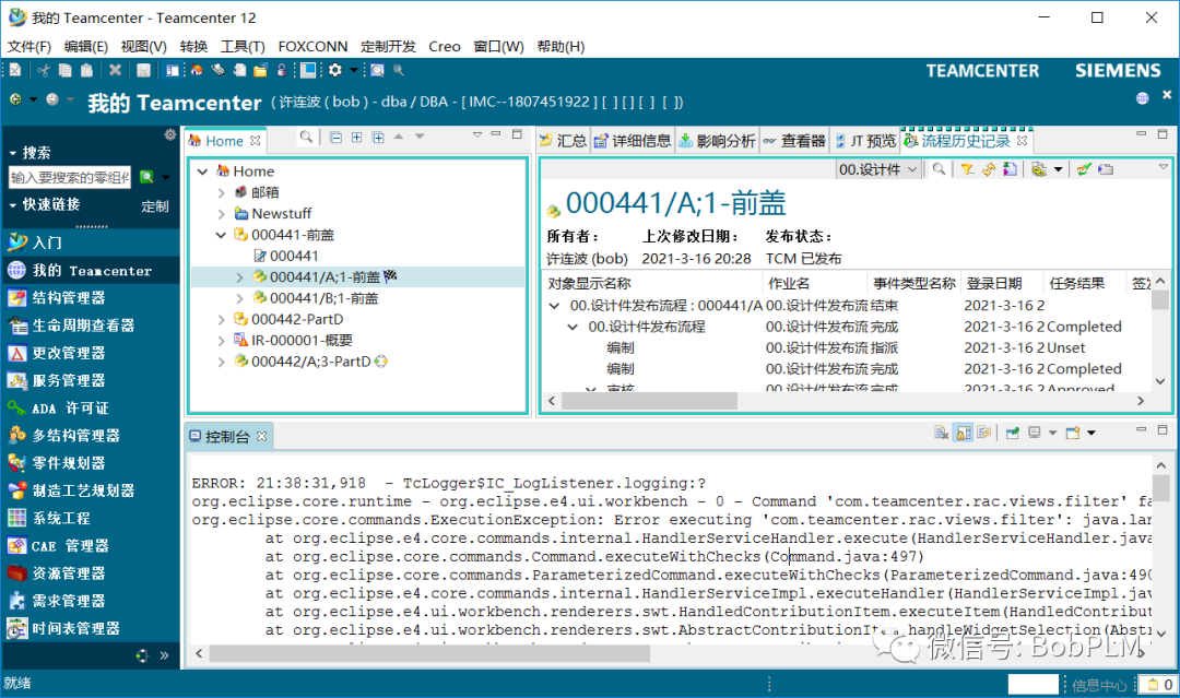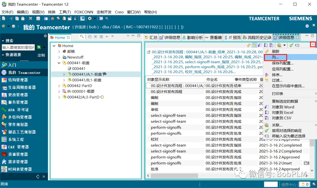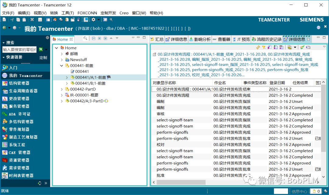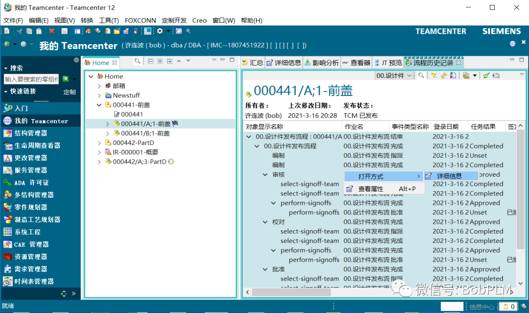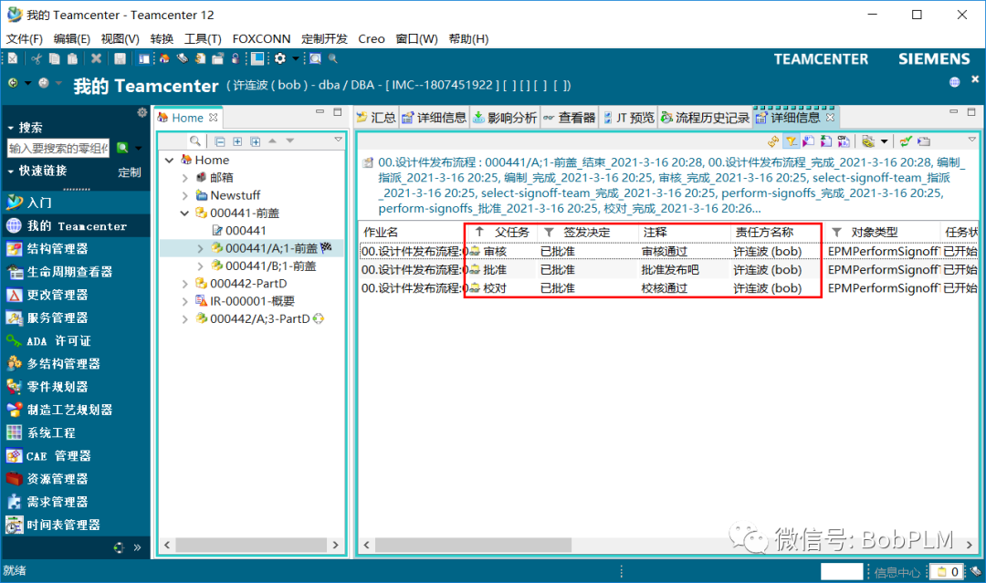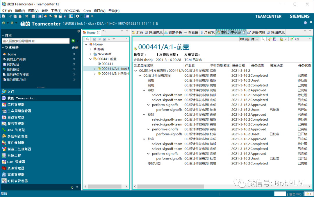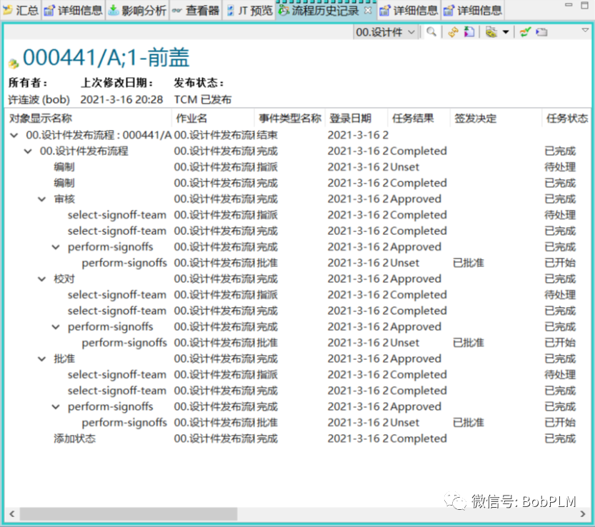 图4:Teamcenter12.4中流程历史记录视图查看签审记录
