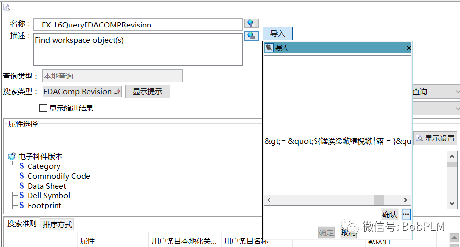 将导在配置查询时候“用户条目本地化关键字”需要避免使用中文,以避免导出查询是中文乱码问题,如果确实需要是客制化中文,则可以通过本地化条目来实现中文查询条件。自定义本地化条目参照Teamcenter多语言环境中二次开发使用查询的技巧中方案3