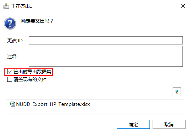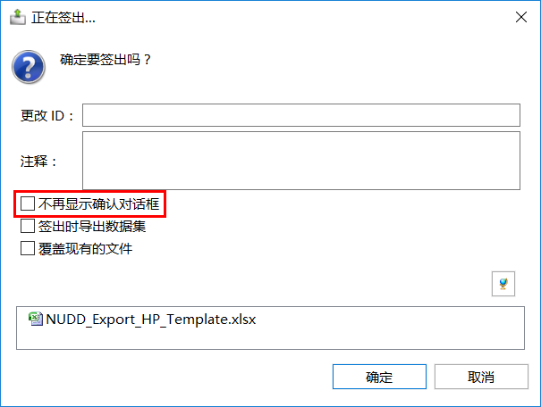 配置签出确认对话框是否默认勾选“签出时导出数据集”勾选项