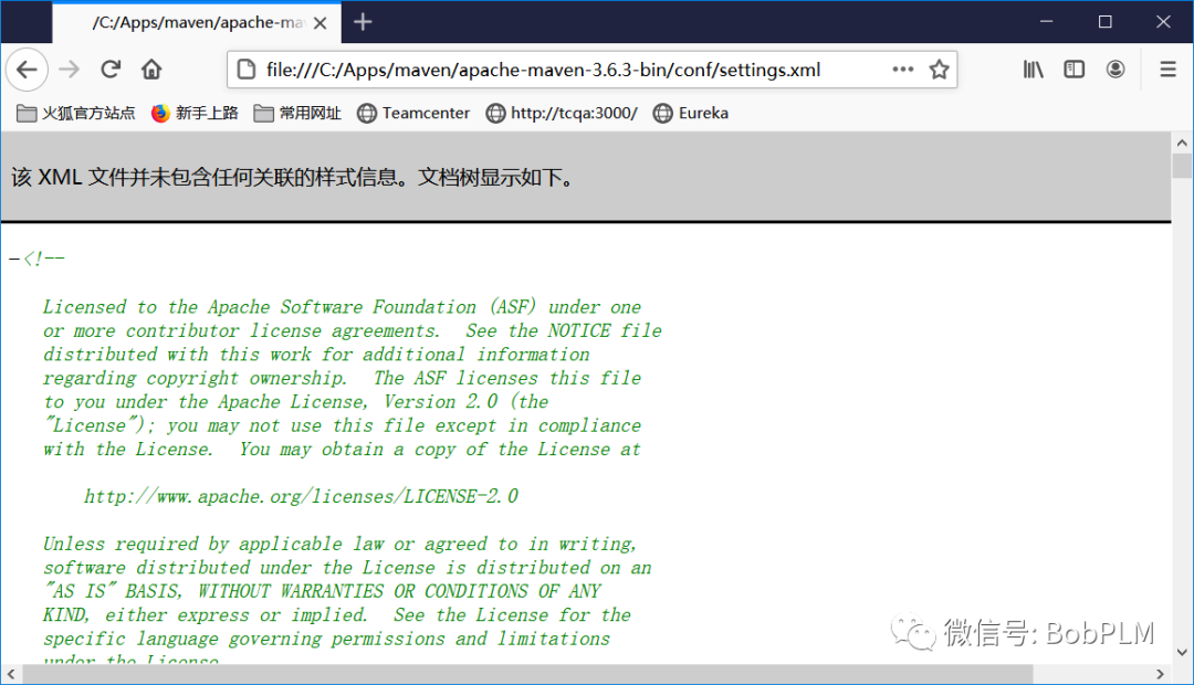编辑settings.xml后用浏览器打开,如果可以正常解析,则表示修改后的格式正确