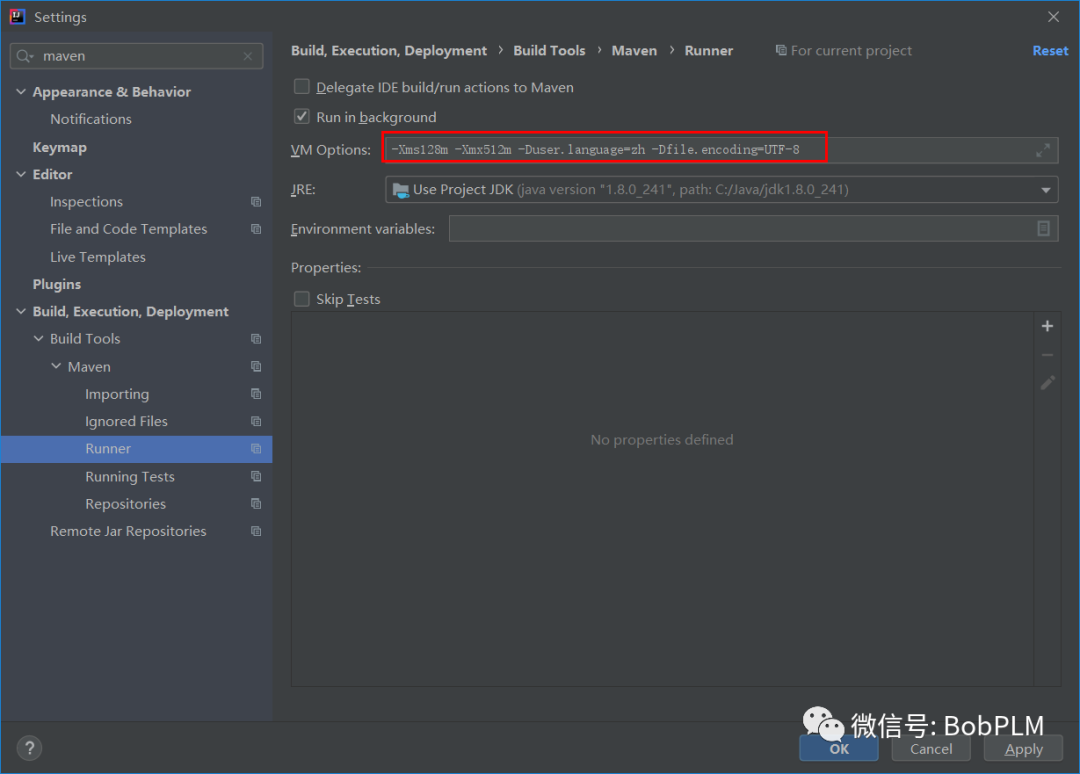 配置Maven的Runner中VM Options(非必须)