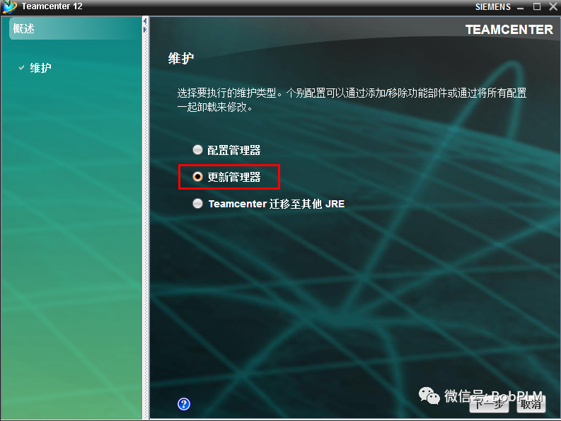 选择“更新管理器”,点击“下一步”