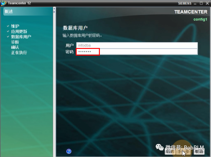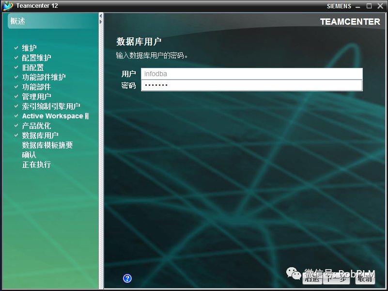 输入“infodba",点击”下一步“