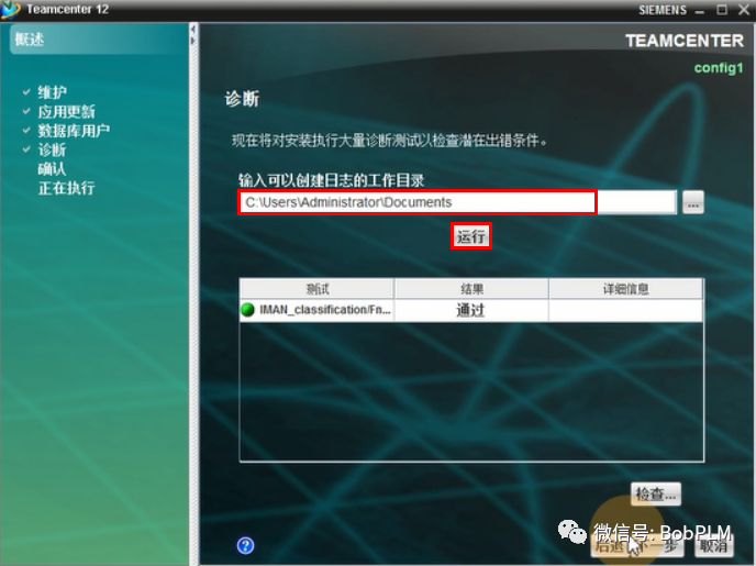 输入诊断日志输出日志,点击"运行",点击"下一步"