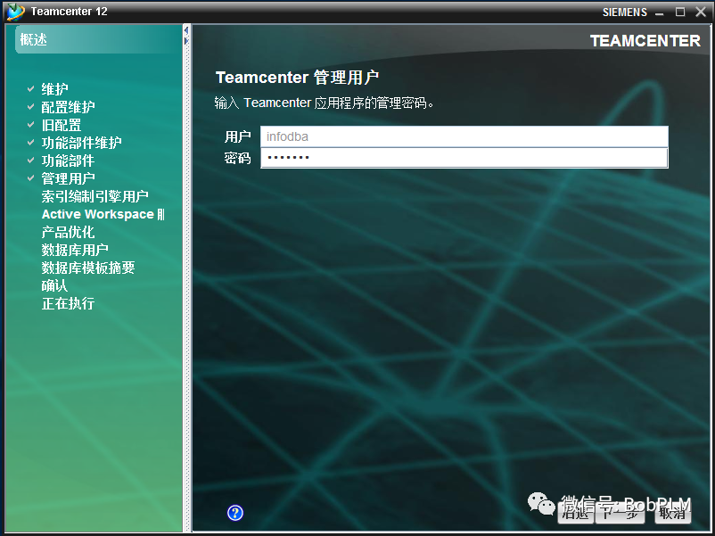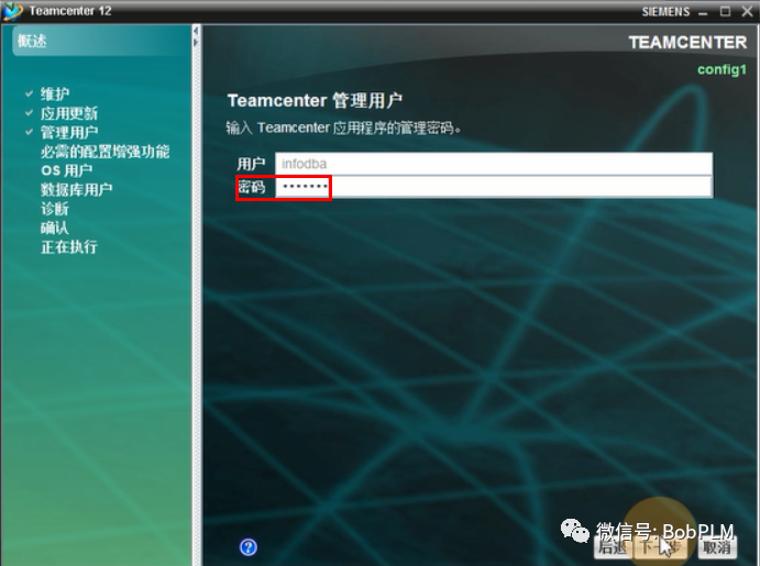 输入TC管理员密码,点击"下一步"