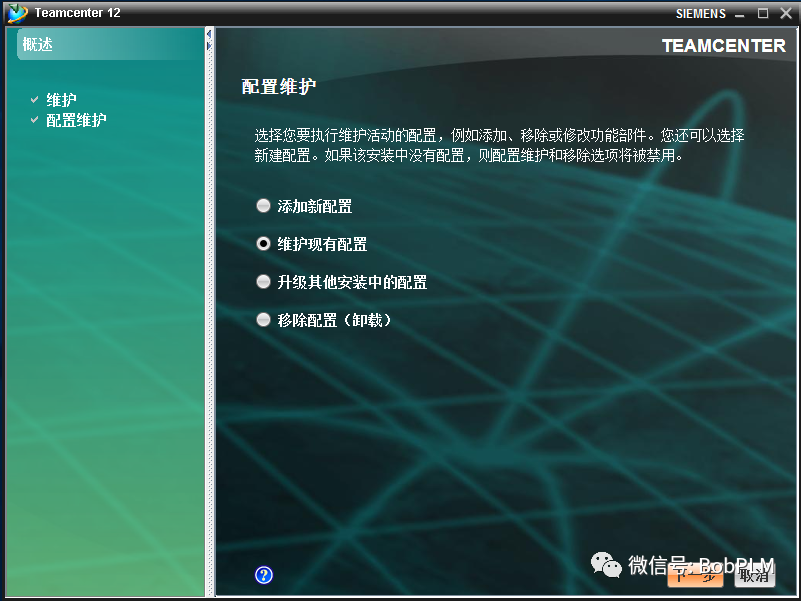 选择"维护现有配置",点击"下一步"