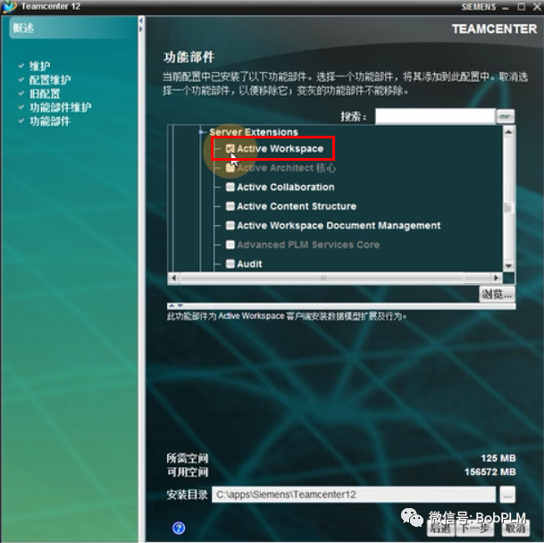选择"Server Extensioins"下的"Active Workspace",点击"下一步"