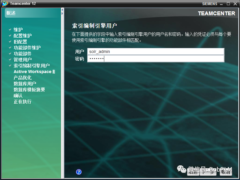 输入索引用户名和密码,点击"下一步"