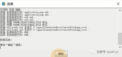 点击“确定”,待生成war包“进度”显示“安装完成”后点击“确定”按钮,点击“退出”按钮完成Web应用创建