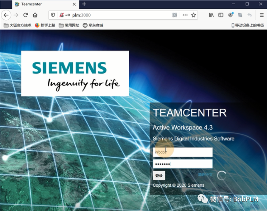 浏览器中输入http:\\plm:3000,回车,输入账户和密码,点击"登录"