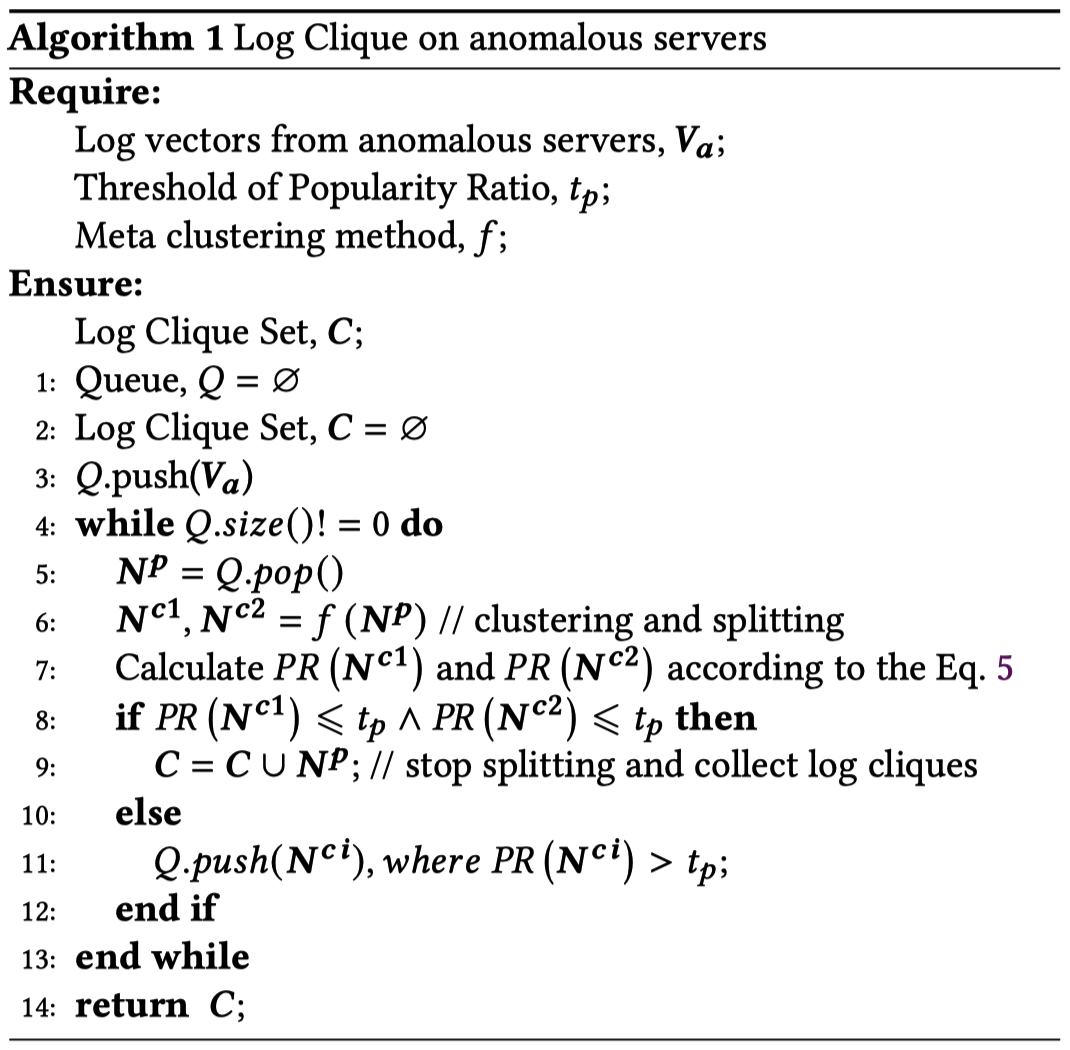 log cliques 可能仍包含正常服务器日志,因此需要对比正常/异常服务器中的 cliques 来去除正常的日志。