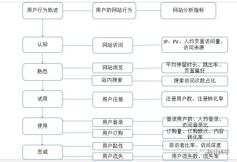 用户在网站的停留时间、跳出率、回访者、新访问者、回访次数、间隔天数;