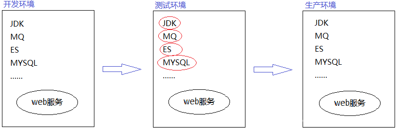 虚拟化(虚拟机):当然上面的问题可以通过创建虚拟机的方式来实现某些功能,但是虚拟机本身就很占用资源,并不利于可移植性。(就是把服务部署在虚拟机中,达到分隔物理资源的作用——充分利用服务器资源)