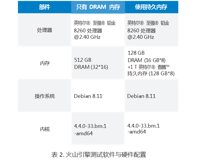 1, 7, 8, 9, 10 数据援引自火山引擎内部测试与评估,更多详情请咨询火山引擎。基准平台配置(未采用英特尔® 傲腾™ 持久内存):处理器:英特尔® 至强® 铂金 8260 处理器 (2.40 GHz);内存:512 GB DRAM (32 GB x 16);操作系统:Debian 8.11;内核版本:4.4.0-33.bm.1-amd64。新平台配置(采用了英特尔® 傲腾™ 持久内存):处理器:英特尔® 至强® 铂金 8260 处理器 (2.40 GHz);内存:128 GB DRAM (16 GB x 8) + 1 TB 英特尔® 傲腾™ 持久内存 (128 GB x8);操作系统:Debian 8.11;内核版本:4.4.0-33.bm.1-amd64。https://www.volcengine.cn/product/intelligent-recommendationhttps://36kr.com/newsflashes/174849https://www.bytedance.com/zh/news/5e478ccfba1834abc7d8aca9thttps://www.intel.cn/content/www/cn/zh/products/docs/memory-storage/optane-persistent-memory/optane-dc-persistent-memory-brief.htmlhttps://www.intel.cn/content/www/cn/zh/artificial-intelligence/volcano-engine.html