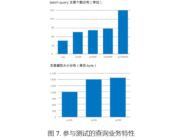 英特尔® 傲腾™ 持久内存在 App Direct 模式下还具备数据持久性。不论遇到意外断电还是计划中的停机,持久内存中的数据都能得以持久保存,从而能提升存储可靠性、增加系统的业务弹性、缩短系统重启时间并提升推荐系统的故障恢复速度。火山引擎选择的英特尔® 傲腾™ 持久内存 100 系列可提供 128 GiB、256 GiB 和 512 GiB 三种容量规格6,而当前 DRAM 内存最大容量为单条 128 GiB。这些持久内存模组兼容 DDR4 插槽,可与传统 DDR4 DRAM DIMM 共存于同一平台。用户可在每个通道上安装一个持久内存,而单路最多支持六个,从而可提供高达每路 3 TiB 容量7。持久内存相比 DRAM 内存更大的容量配置可有效提升单台服务器的存储密度,降低因购买、部署和维护更多服务器而带来的大笔额外费用。再加上持久内存相对 DRAM 内存的每 GiB 成本更低,因而能实现存储上高密度和低成本的双重收益。值得一提的是,当仅使用 DRAM 内存扩充内存容量时,火山引擎单台机器只能处理单个业务,CPU 利用率偏低;但使用 DRAM 内存 + 持久内存的方式扩容后,就可以在单台机器上并发处理两个数据业务,从而提升 CPU 利用率,充分利用服务器的潜能。由于 IndexService 业务底层存储是基于 RocksDB PlainTable,数据在内存文件系统或共享内存/dev/shm 中以 SST (Sorted String Table) 文件存储。SST 又分为多层,每一层的数据达到一定阈值后会挑选一部分 SST 合并到下一层,每一层的数据是上一层的 10 倍(因此 90% 的数据存储在最后一层)。RocksDB 中 L0 和 L1 是性能的关键,因为 L0 中文件是重叠的,其他层几乎是不重叠的。为了充分发挥傲腾™ 持久内存的优势,火山引擎与英特尔的技术支持团队做了如下优化:分层混合介质存储:分层的主要目的有两个。首先是降低 L0 层的查询成本;其次,该业务下的数据更像 read latest 场景,大约有 30% 热数据上集中了 70% 的读。图 6 所示为混合介质上的数据分布情况,将 L0、L1 和 L2 放在 DRAM 内存中,以降低 L0 文件数、降低时延和提升重写业务性能,让 DRAM 内存和傲腾™ 持久内存能够发挥出各自的优势。借助分层混合介质存储,可以得到数据在 DRAM 内存上的读写带宽,分别为 4830.16 MB/S 和 3036.23 MB/S,而在持久内存上的读写带宽分别为 1348.50 MB/S 和 521.60 MB/S 8。表 1 展示了数据在 DRAM 内存和持久内存中的空间分布。在此基础上,优化 PlainTable 的二分结构和 Bloom Filter 参数,可降低 IO 访问次数。增大 L0 的文件大小并同时减小其他 level 的文件大小,可加速 L0 到 L1 的 compaction 速度,从而减少文件数量。优化 LSM 树结构,可对 LSM 树结构进行优化,改善读写放大的瓶颈,提高数据吞吐量,并使其更加贴合推荐系统的业务场景。为了验证这个异构存储结构采用英特尔® 傲腾™ 持久内存后在推荐系统中的性能表现,火山引擎在英特尔的支持下,使用真实线上请求数据,按照表 2 所示的配置情况对采用了持久内存的相关系统进行了一系列的模拟测试,并获得了可喜的成果。以推荐业务最常见的查询文章相关属性这一场景为例,系统通常需要一次查询若干篇文章进行预测,才能判断一篇文章是否值得被推荐。一次查询的文章数量和每一篇文章对应的数据大小如图 7 所示: