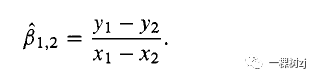 为了解释β由于 X 中每单位差异的 Y 平均差异与模型的拟合无关,因此考虑一个只有两个点 (X1 , y1 ) 和 (x2, y2) 的数据集。β的估计将是两点之间的线的斜率