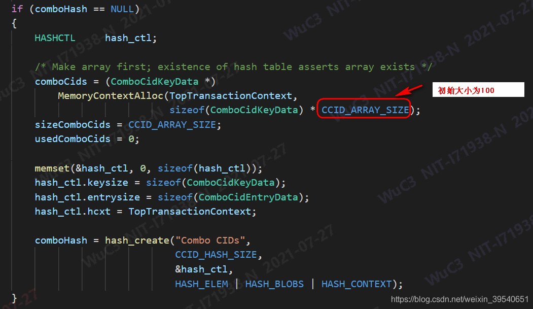 事务在第一次更新本事务插入的tuple时,会新开辟一个数组ComboCidKey comboCids;其大小初始的时候为100(每次空间不够的时候,会将数组的大小的扩大2倍)。同时还会使用一个hashmap,用来根据ComboCidKeyData查找combo cid。