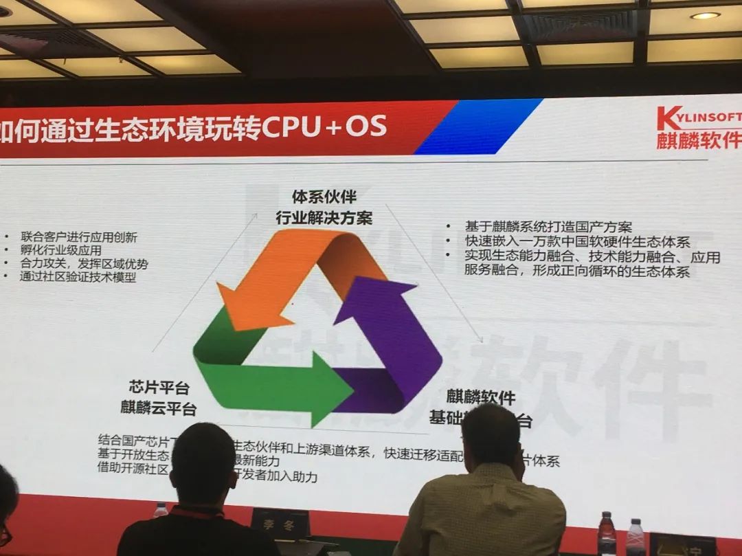 李震宁说到,“中国此前并非没有尝试过自己写操作系统,但后来发现操作系统要成功,生态远比技术要重要。”使用开源内核打造操作系统,能够更好地利用开源生态。据悉,当前其他主流的国产操作系统还包括中标麒麟、银河麒麟、优麒麟、中科方德、深度等,全部都是基于开源的Linux的操作系统。飞腾处理器(PHYTIUM)加麒麟操作系统(KYLINSOFT)形成的“PK体系”,不是类似WinTel(Windows+Intel)那样绑定的封闭体系,意味着开放的生态和更强的性能。2011年,中国电子确定了芯片和操作系统一体化的研发理念,研发了具有完全自主知识产权的飞腾处理器和麒麟操作系统,PK体系的概念就诞生在那时。2019年11月,8年多的技术储备和生态构建,中国电子发布了《PK体系标准(2019年版)》及《PKS安全体系》。PK体系标准的出炉,标志着中国终于有了计算机软硬件基础体系标准,为产业生态的发展指明了方向。从PK体系标准出炉,到冰火麒麟归一,我们不难发现中国科技产业强化基础技术研发的目标正在兑现,攻克卡脖子技术、构建自主可控体系,进而打造“中国企业搭台,各方唱戏”的生态系统。据介绍,当前PK体系主要应用于政府、军工、央企等关键领域,未来会逐步向民用领域发展,普惠到消费大众层面。据李震宁介绍,PK体系的特色能力是一台变两台(PC+手机),其中独创的“KYDROID技术能让安卓应用与麒麟桌面环境融合,通过软件商店移动百宝箱,将300万余款安卓适配软硬件无缝迁移到国产平台上来,实现移动生态的扩展。”今年8月13日,中国电子在广州发布银河麒麟操作系统V10版本,具有Windows