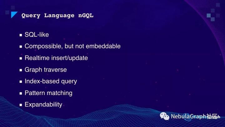 - 查询语言的编程能力:Nebula 的查询语言 nGQL 是 Programmable。