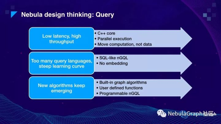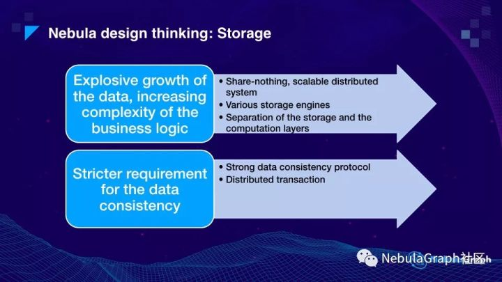 刚刚说到过技术挑战中数据量迅速膨胀,业务逻辑越发复杂,像这样的开发挑战,Nebula 是如何解决的。