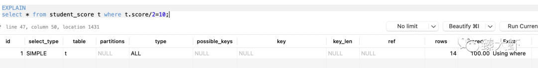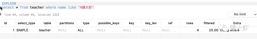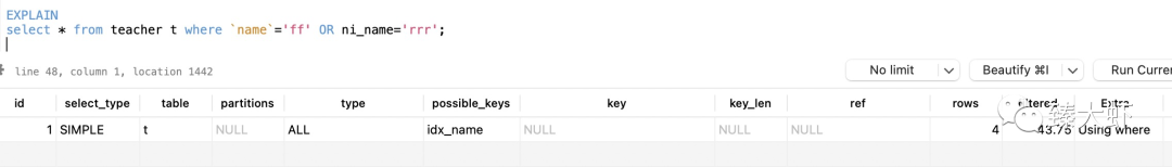 相当于如下,可以看到,用到了内表teacher的索引有,跟subject的关系不大