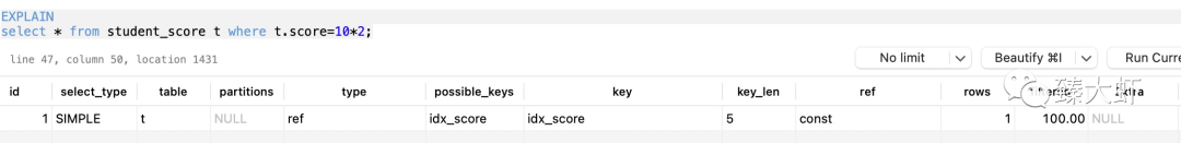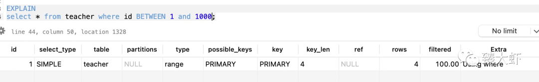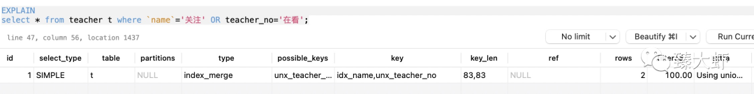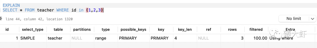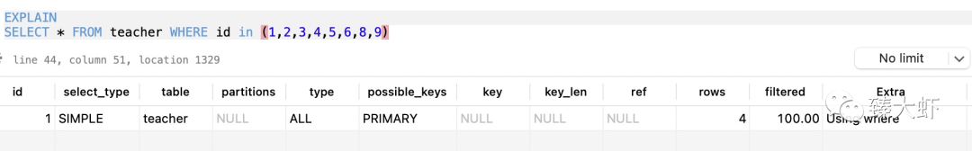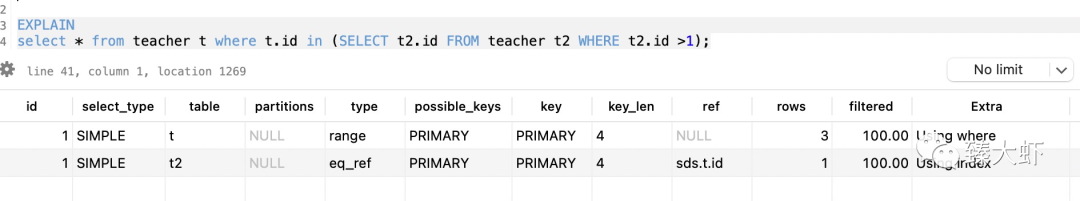 比如teacher的id有1,2,3,相当于如下,用到了外表subject的索引,跟teacher的关系不大
