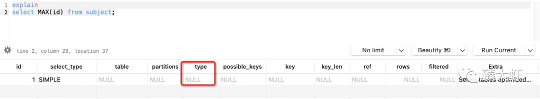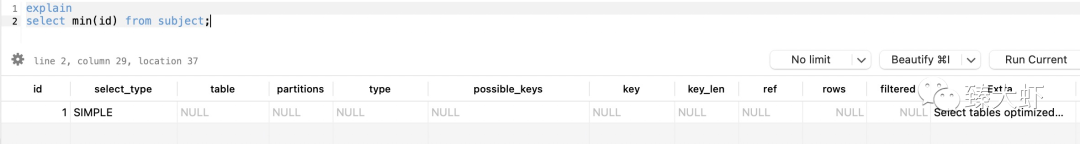 select 操作已经优化到不能再优化了,mysql 没有遍历表或索引就返回数据了